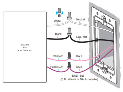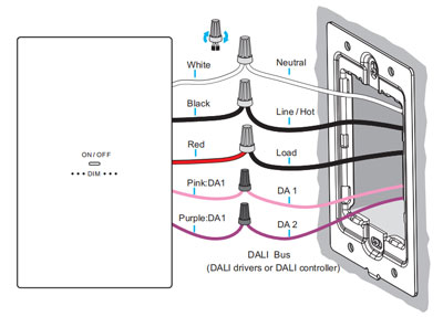 Interrupteur mural à bouton, plage de tension d'entrée universelle 100-277 VCA pour variateur dali-2 boîtier en plastique Conçu pour une installation facile et rapide. Aucun code d'adresse n'est requis : il suffit de brancher le cordon d'alimentation et l'appareil est prêt à l'emploi. .