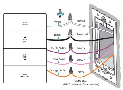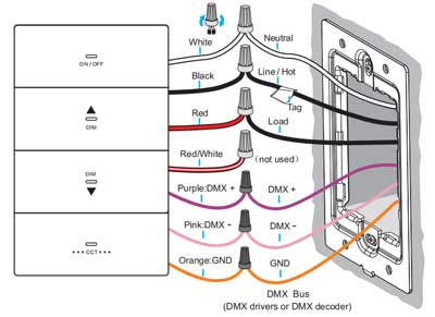 Le support mural à 3 boutons Variateur DMX Conçu avec une coque en plastique blanc, il s'intègre parfaitement à la plupart des styles de décoration intérieure. La commande à trois boutons permet de répondre aux besoins de gradation de la plupart des utilisateurs, évitant ainsi l'installation de plusieurs variateurs et créant un mur épuré.