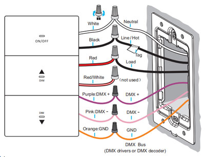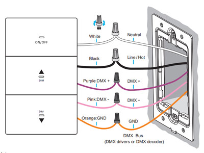 Le DMX variateur Conçu avec une coque en plastique blanc, il s'adapte à la plupart des styles de décoration intérieure. Il est équipé d'un bouton à trois boutons pour répondre aux différents besoins de variation de l'intensité lumineuse et offrir un contrôle d'éclairage de niveau professionnel. Garantie 5 ans.