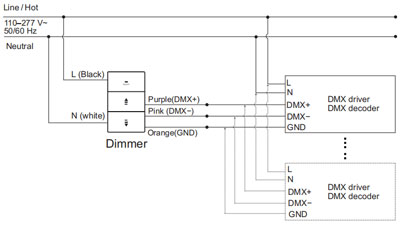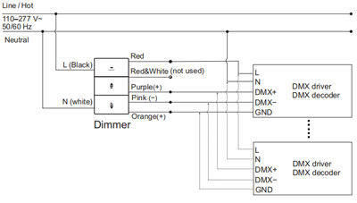 Remarque 2 : Le variateur et le pilote/décodeur DALI sont connectés indépendamment à l'alimentation d'entrée (secteur CA)