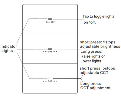 Remarque : Lorsque le bouton de gradation (appui long) atteint la luminosité maximale ou minimale, le voyant lumineux clignote lentement. |