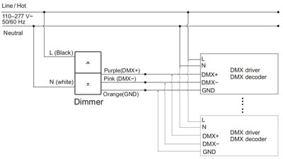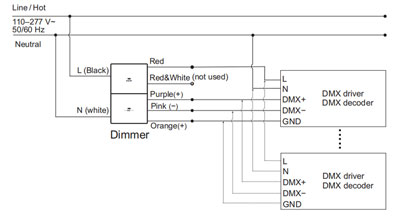 Remarque 2 : Le variateur et le pilote/décodeur DALI sont connectés indépendamment à l'alimentation d'entrée (secteur CA)