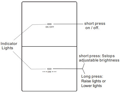 Remarque : Lorsque le bouton de gradation (appui long) atteint la luminosité maximale ou minimale, le voyant lumineux clignote lentement. |