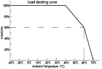 | Environnement | TEMPÉRATURE DE TRAVAIL | -40~+60℃ (voir courbe de déclassement ci-dessous) | ||