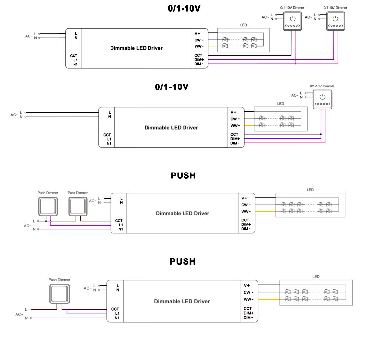 1. Les quantités ci-dessus de pilotes de LED connectés sur le type C sont recommandées sur la base d'une température ambiante maximale de 50 ℃.