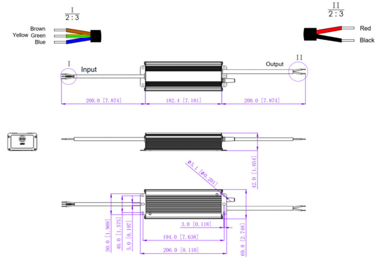 2. Câble de sortie 2*16AWG, câble rouge (+) vers le côté positif (+), câble noir (-) vers le côté négatif (-).