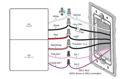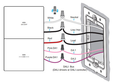 Avec une plage de tension d'entrée universelle de 100 à 277 VCA, le variateur à 2 boutons dali-2 Son utilisation est aussi simple et pratique qu'un variateur d'éclairage domestique classique. Son installation est simple et rapide, et ne nécessite aucune mise en service professionnelle. Une fois installé, vous pouvez l'utiliser immédiatement.